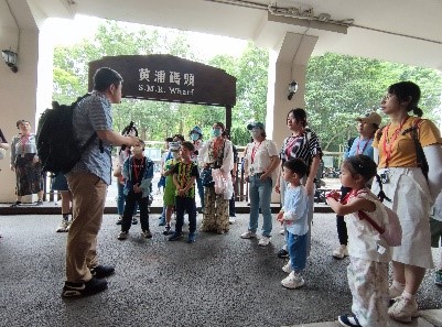 本次活动的出发地是杨浦滨江起点的秦皇岛路旅游码头,其前身为黄浦码头。百年前,周恩来、邓小平、聂荣臻等爱国青年学生从黄浦码头登船出发,满怀理想和信念,奔赴法国开展勤工俭学,寻找救国图强、改造社会的知识和真理。大家聚精会神,感受着革命历史的脉搏跳动,思绪仿佛已随着讲解回到百年前。