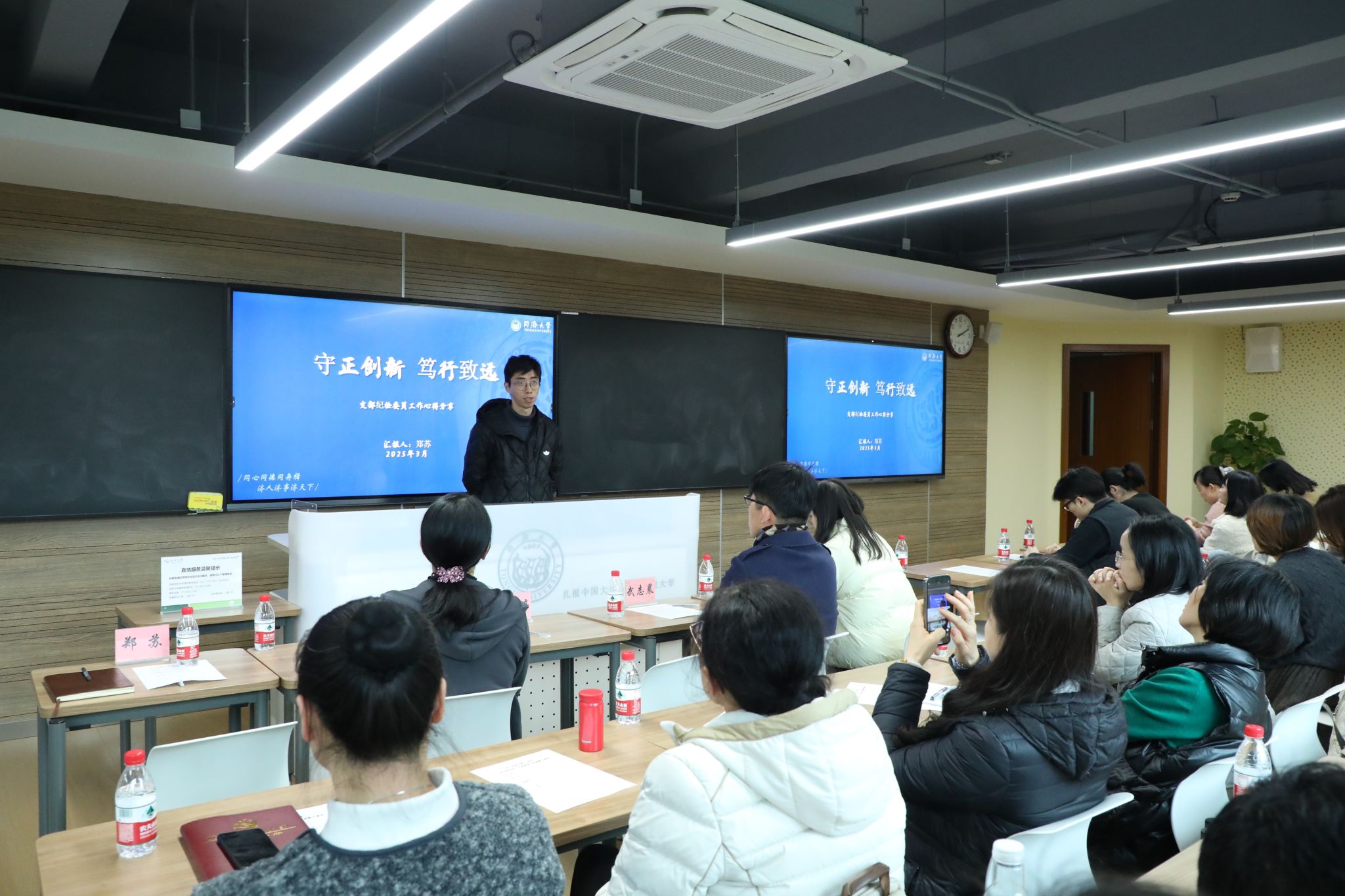 接下来,三位机关青年进行了优秀课程分享。武志晨以《超标准、超范围接待行为定性辨析》为题,围绕《中国共产党纪律处分条例》中关于超标准、超范围接待的处分,超标准、超范围接待行为的违规要素,超标准、超范围接待行为的责任认定,超标准、超范围接待行为的主要表现,超标准、超范围接待行为的特殊情况等五个方面进行分享。武志晨强调在接待工作中,要按照《党政机关国内公务接待管理规定》等规定,坚持有利公务、务实节俭、严格标准、简化礼仪、高效透明的原则,做好相关工作。王争妍以《财务报销管理》为题,围绕经费使用基本要求,财务报销要点,2024年修订制度文件等三个方面进行分享。王争妍强调要严守廉洁自律底线,切实做到公私分明,确保财务工作规范、有序地推进。郑苏以《守正创新,笃行致远》为题,围绕担任支部纪检委员期间的主要工作、存在问题以及未来工作计划等三个方面进行分享。郑苏强调要抓实理论武装,做理想信念的宣传者,锻造坚强堡垒,做基层党建的开拓者,努力做自我革命的表率、遵规守纪的标杆。
