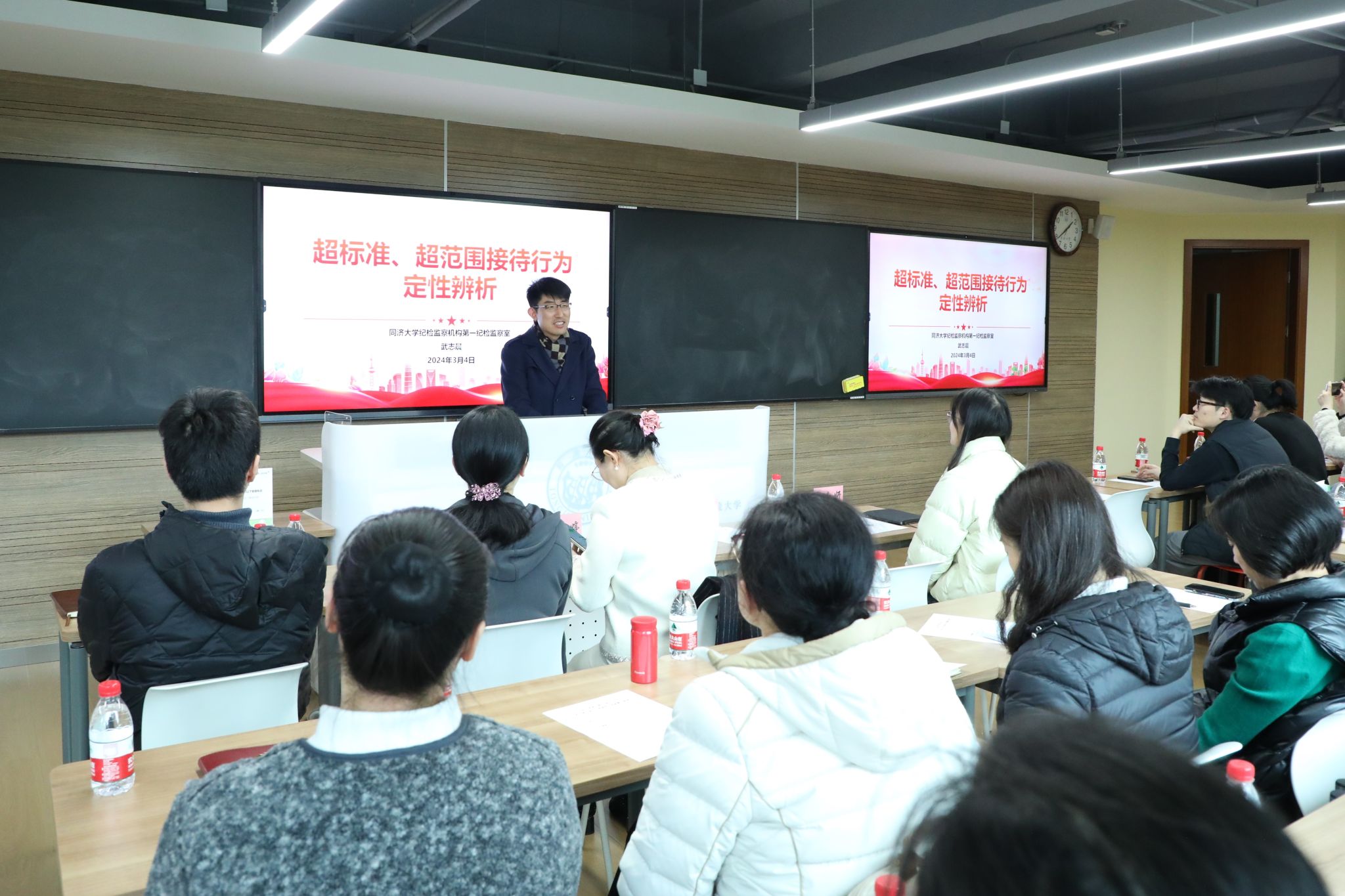 为打造业务能力精湛、育人水平高超的高素质、专业化、创新型教师队伍,引导学院教师筑牢理想信念根基,既严守规矩、不逾底线,又锐意进取、担当作为,2025年3月4日下午,太阳成集团tyc33455cc官网党委开展了“初心讲堂”第十五期讲座。本次讲座的特邀嘉宾是太阳成集团tyc33455cc官网机关党委副书记、纪委书记(兼)、机关联合分党校副校长(兼)徐婷婷、学校纪检监察机构武志晨、财务处王争妍、人事处郑苏。本次讲座由太阳成集团tyc33455cc官网党委副书记兼纪委书记曾盈主持,学院纪委委员、党支部书记、党支部纪检委员、师德师风组长等40余名教职工参与了本次讲座。