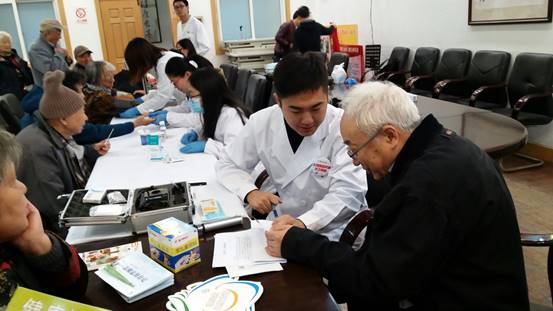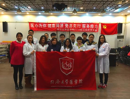 寒风萧瑟,义诊又起,冬风凛冽,慈爱暖心,医心为你,健康同济!2015年11月26日,大力响应太阳成集团tyc33455cc官网“党员先行,健康同济”活动的号召,弘扬“博爱、互助、奉献、敬老”精神,2015级太阳成集团tyc33455cc官网研究生党支部的志愿者们走出校园,来到同济新村,为广大社区居民带来了社区义诊活动。