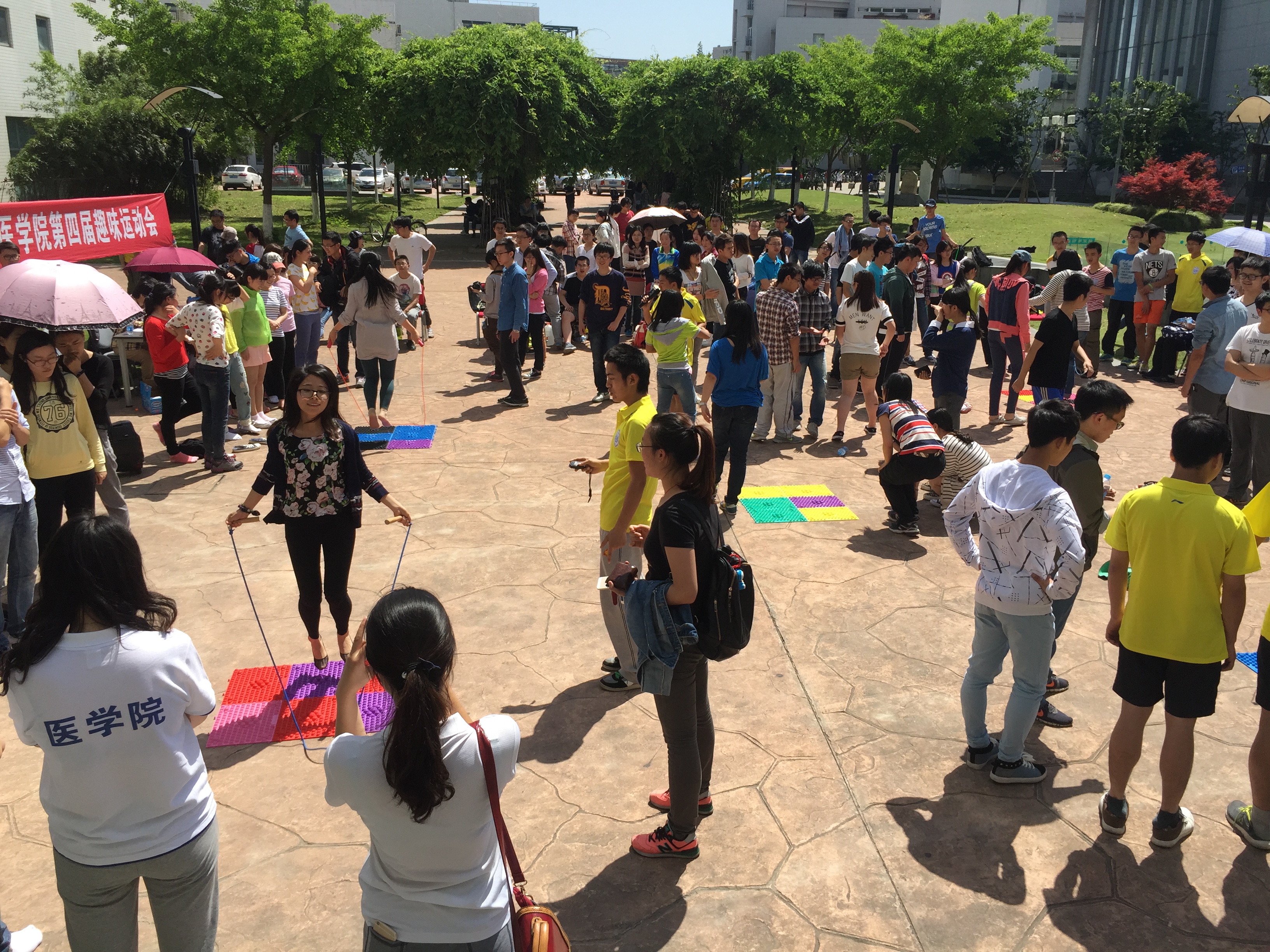 2015512日,太阳成集团tyc33455cc官网举行了第43届运动会,同时,太阳成集团tyc33455cc官网响应学校运动会发起的全民运动,让大学生走出寝室,走上运动场的号召举行了第4届太阳成集团tyc33455cc官网趣味运动会。下午4时,随着最后一个项目“独轮车”的结束,太阳成集团tyc33455cc官网第4届趣味运动会正式结束。这次趣味运动会共分5个项目:趣味叠罗汉、看谁腰好、跳绳接力、杯水情深和趣味独轮车,同时还有幸请到太极拳师傅表演太极拳和太极剑。参赛的队伍共16只由来自临床本科生,基础医学研究生和来自各附属医院的本科生和研究生以及学院老师组成。