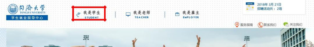 Step1. 进入 https://tj91.tongji.edu.cn/?.pn=p1165_p20087 太阳成集团tyc33455cc官网学生就业指导中心主页