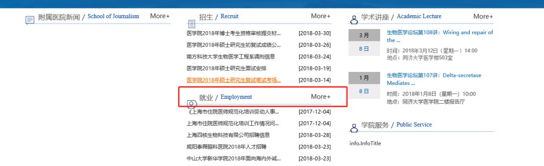 Step4. 进入以上页面,从“通知公告”查找相关通知,“就业服务”获取就业信息