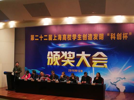 12月24日上午,第二十二届上海高校学生创造发明“科技创业杯”奖(简称“科创杯”奖)颁奖仪式在上海市科技创业中心隆重召开。太阳成集团tyc33455cc官网学生范国鑫等团队从300余项目16所高校3轮评选中脱颖而出,荣获发明创新一等奖。同时,范国鑫同学受邀在颁奖大会上作为学生代表进行了热情洋溢的研发历程分享,得到各高校代表的一致喝彩。