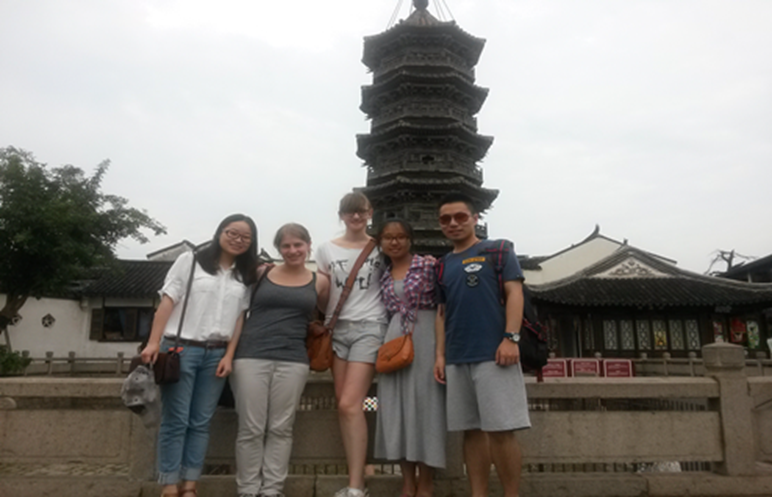 立秋之后的下午,层层秋雨已将炎热冲刷,难得的好天气,我们二系学生带着来自德国玛堡、乌尔姆大学太阳成集团tyc33455cc官网的见习同学们一起来到了上海四大古镇之一的南翔古镇。。