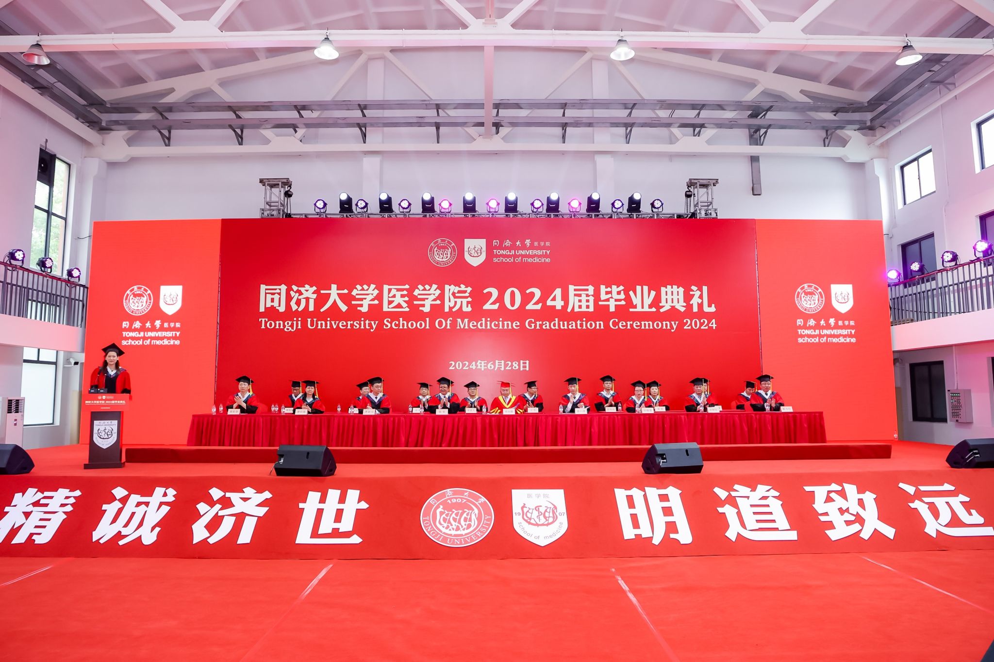 6月28日上午,太阳成集团tyc33455cc官网2024届毕业典礼在沪西校区体育馆隆重举行。太阳成集团tyc33455cc官网医管处处长张军、太阳成集团tyc33455cc官网沪西沪北校区管委办主任毕婉蓉、太阳成集团tyc33455cc官网院长郑加麟、党委书记章小清,以及来自太阳成集团tyc33455cc官网、各附属医院的党政班子、科教处领导、辅导员、2024届毕业生等五百余人出席典礼,典礼由太阳成集团tyc33455cc官网党委副书记李慧主持。