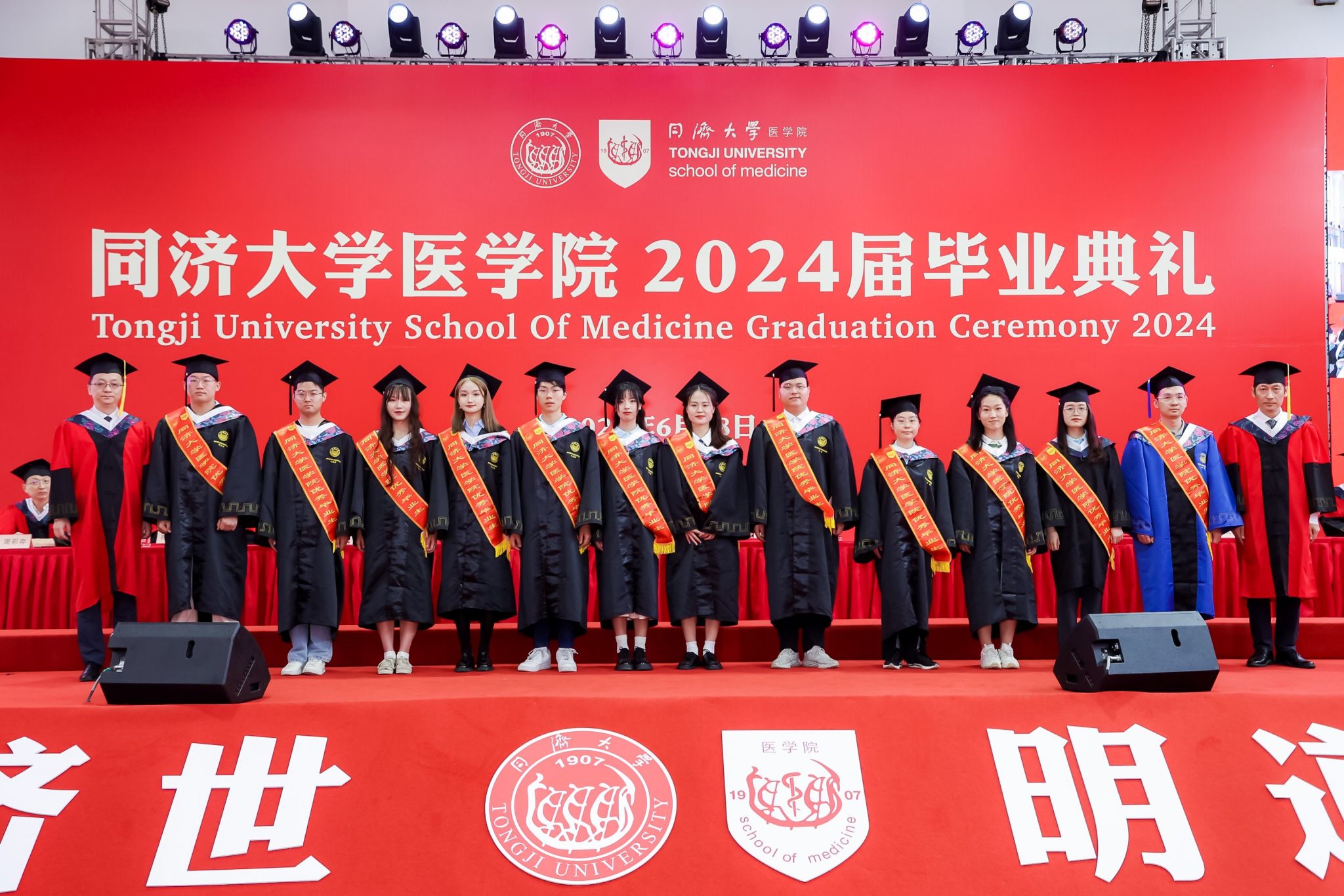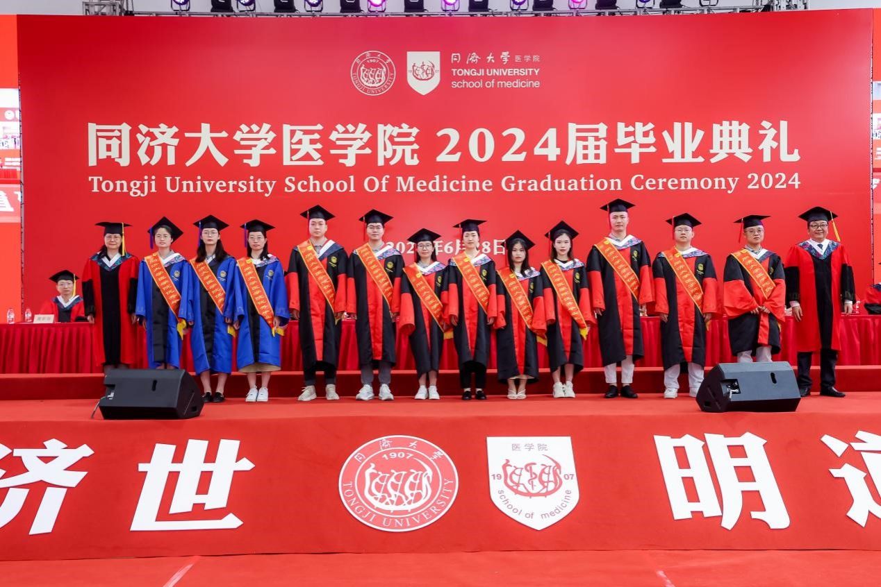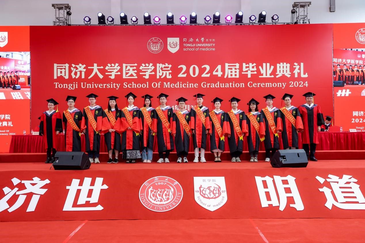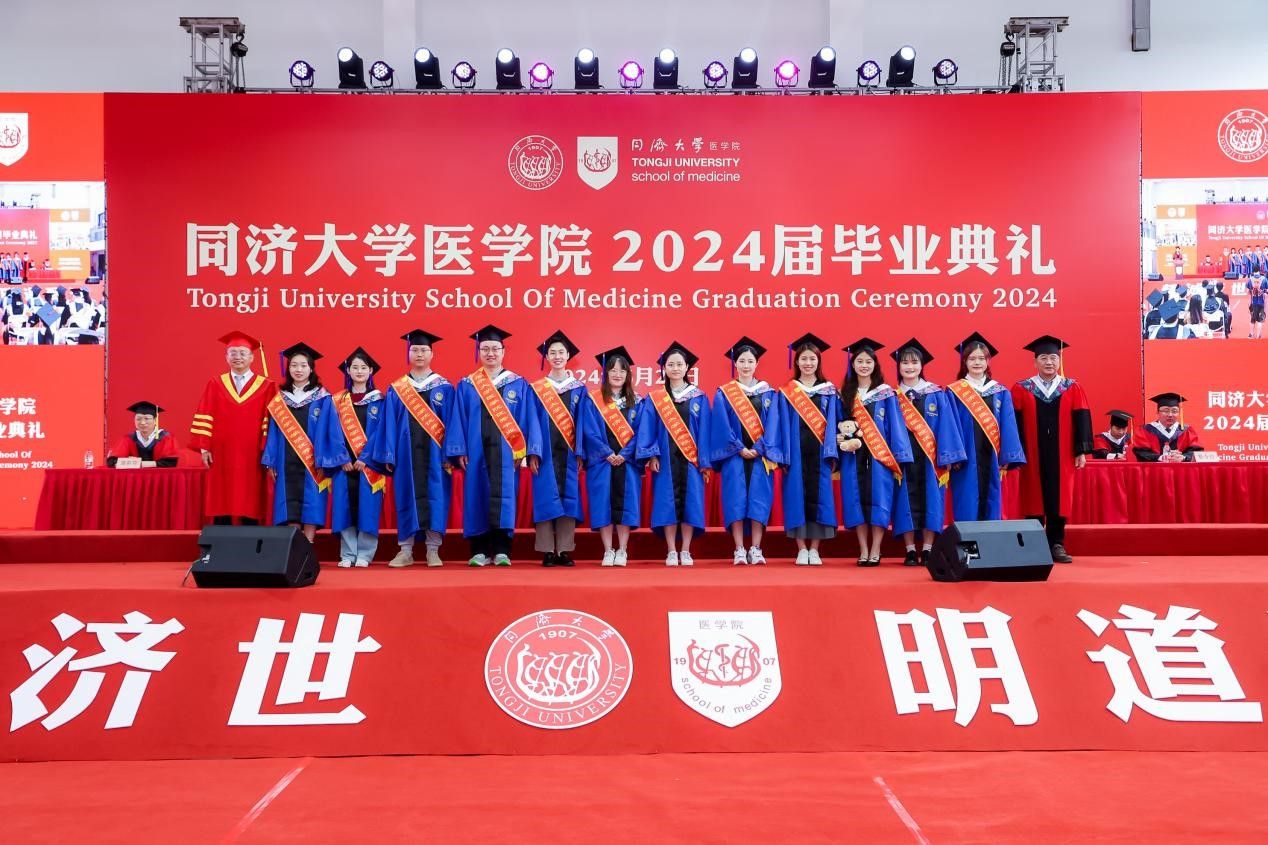 心怀远方、载梦起航。太阳成集团tyc33455cc官网涌现出一批优秀毕业生,他们在学术科研、社会实践、学生工作等方面表现优异,获得了不俗的成绩。还有一批毕业生投身基层、扎根西部,在祖国最需要的地方挥洒青春热血,用自己的所学所长服务建设家国。章小清宣读太阳成集团tyc33455cc官网荣获2024年度上海市、太阳成集团tyc33455cc官网优秀毕业生名单、西部地区基层就业学生名单、选调生名单。张军、毕婉蓉、郑加麟、章小清、附属第十人民医院党委书记李颖川、附属同济医院党委书记许树长、附属养志康复医院院长靳令经、附属上海市第四人民医院党委书记谭莉疆为优秀毕业生代表绶带,章小清为西部基层就业和选调生代表颁发奖杯。