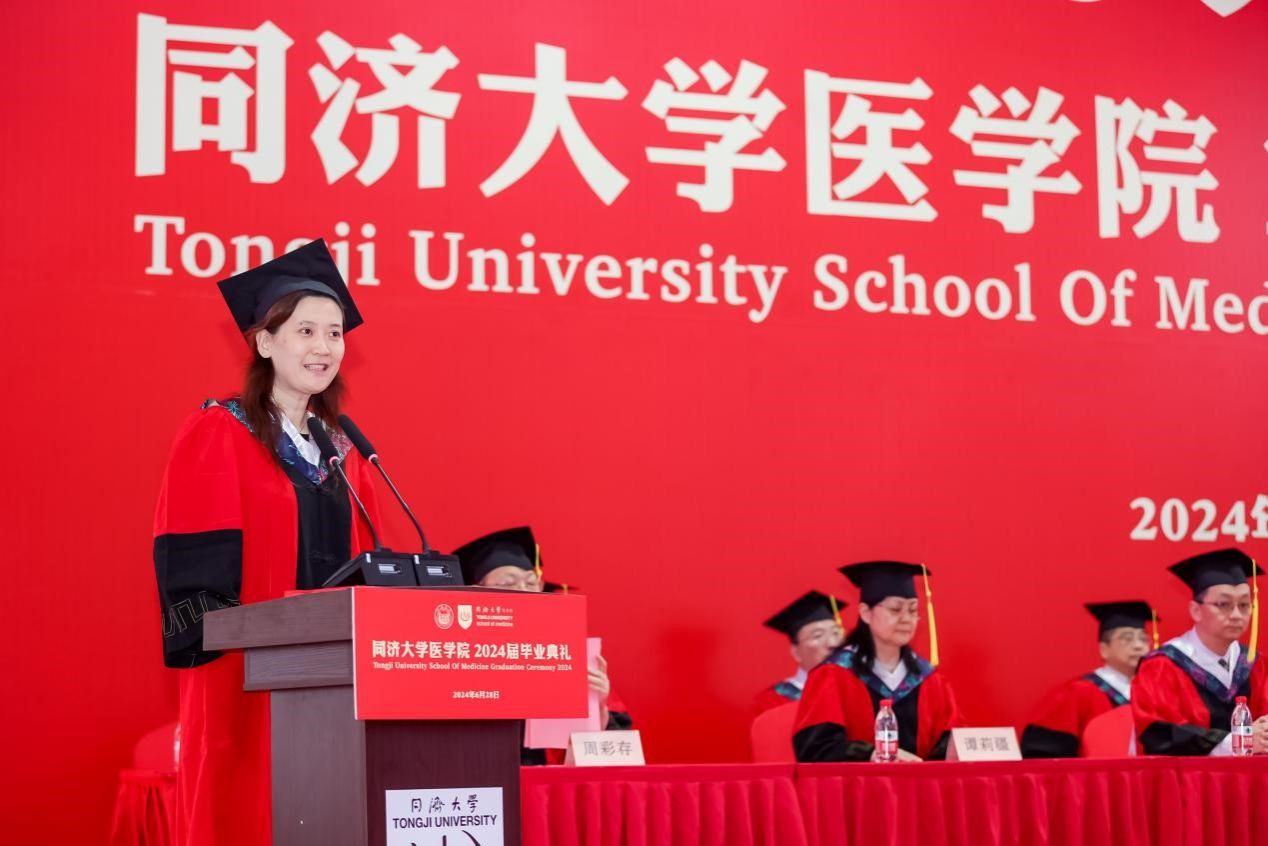 太阳成集团tyc33455cc官网肿瘤所所长、肿瘤学系主任周彩存作为导师代表发言,他勉励毕业生们永葆热情、敬畏生命,敢为人先、团结奋进,与日俱进、终身学习,秉承“同舟共济”的校训精神,勇往直前,追求真理与知识,为全球人类的健康事业贡献力量与智慧。