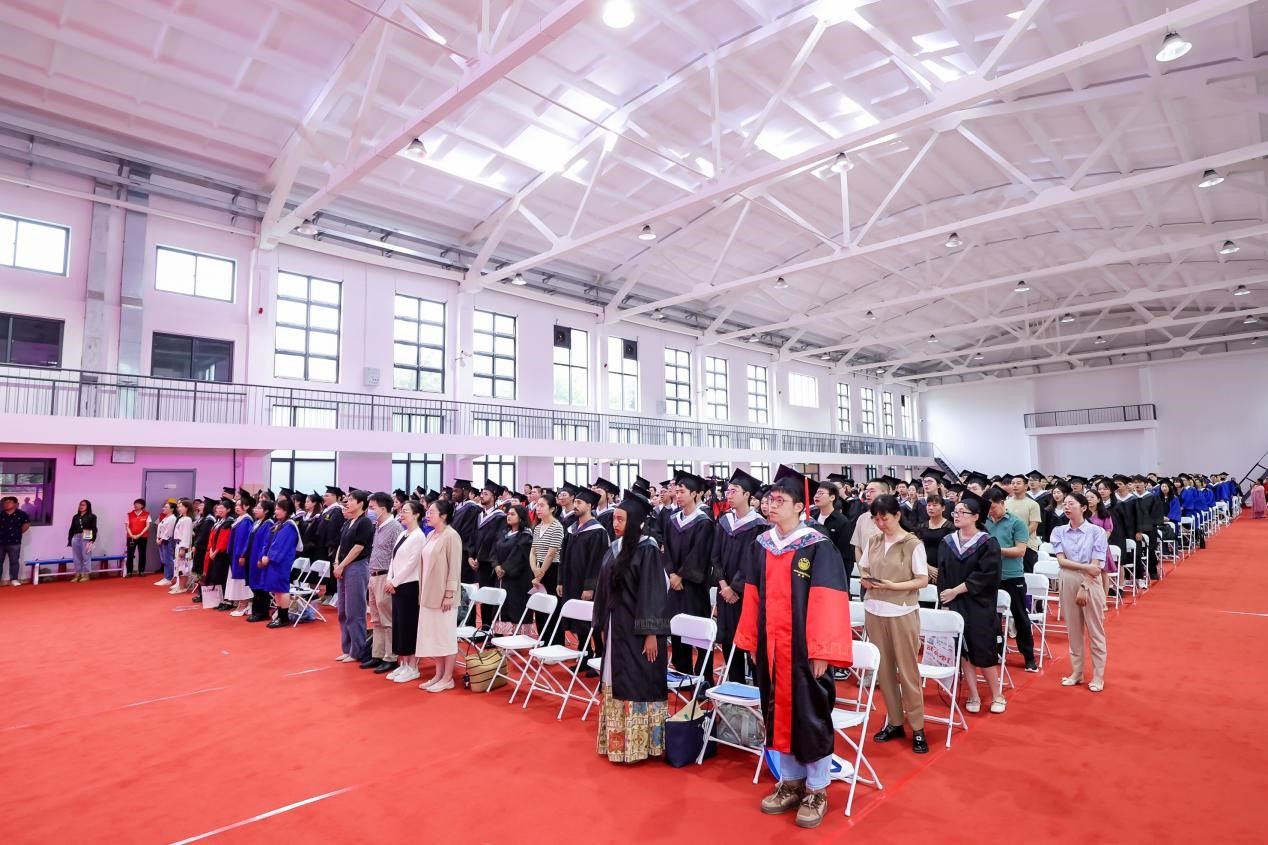 毕业典礼在雄壮的国歌声中拉开帷幕。