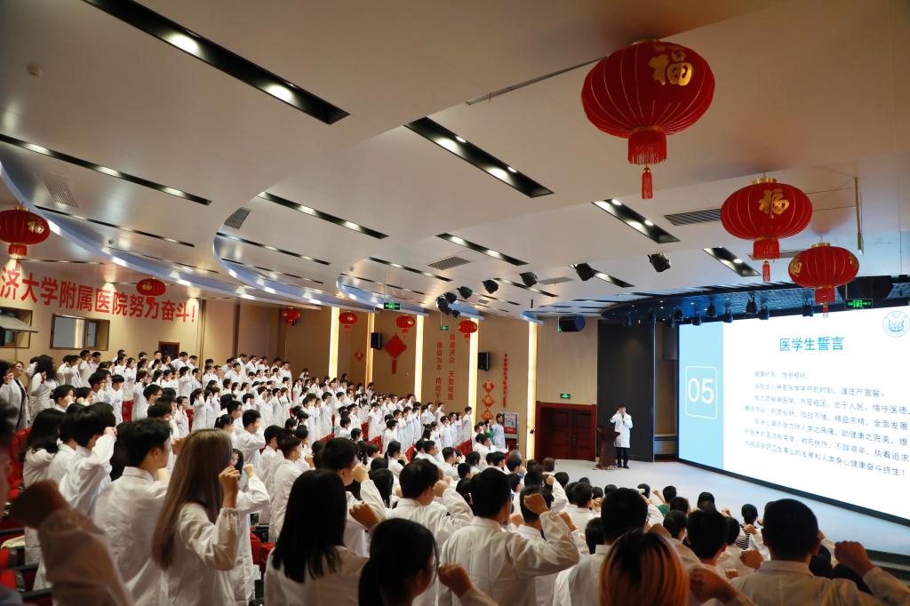 太阳成集团tyc33455cc官网党委书记章小清上台领誓,同学们的誓言铿锵有力,声声回响。“德不近佛者不可为医,才不近仙者不可为医”。相信在同学们宣誓的那一刻,标志着一颗仁心的萌芽,多的是一份踏实与神圣,未来将习得一份仁术以除人类病痛。