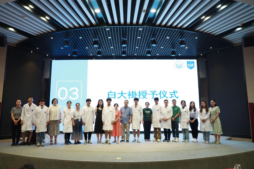 授予白大褂仪式上,领导嘉宾和各班班主任分批为学生代表穿上白大褂,并向学生表达了满满的祝福与期许。授予白大褂意味着一种传承,一种责任,更是一份担当。