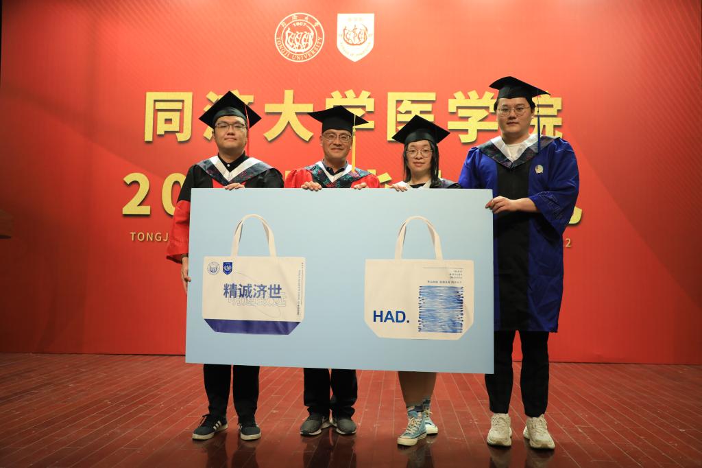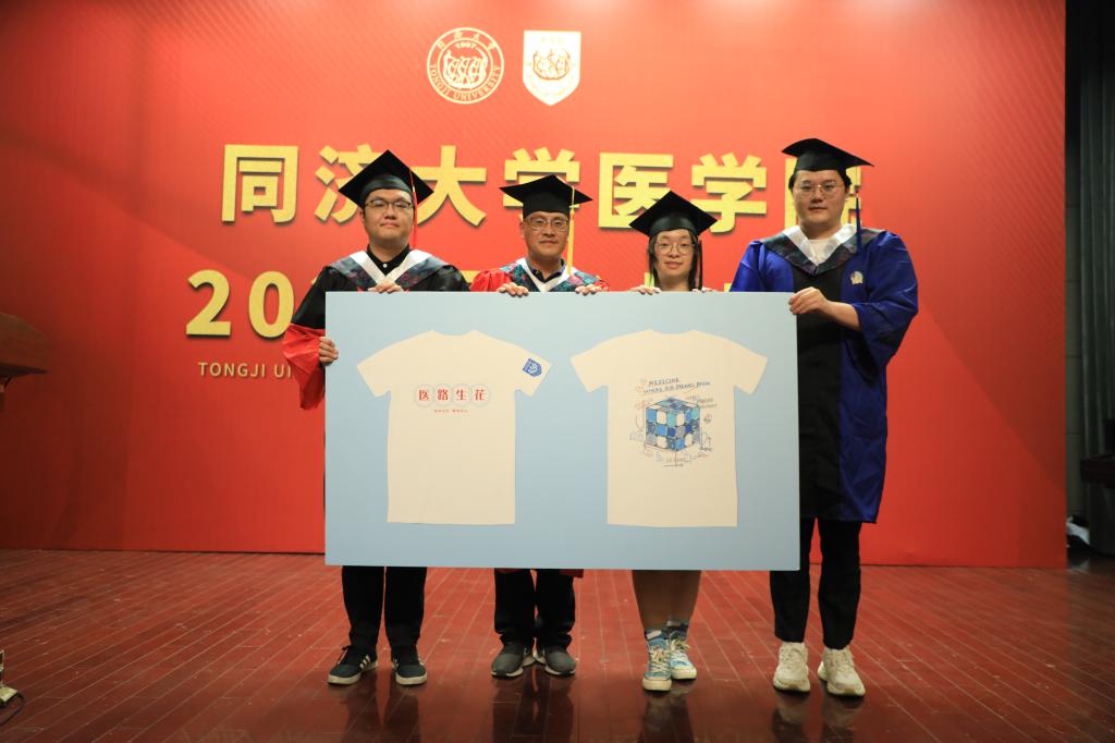 徐陈昊义阐释到,文化衫上的魔方图案象征着医学生逻辑性强、思考全面的优良品质,手提袋上的“梦自医始”、“医路生花”、“同济天下”象征着漫漫医学路上的三个阶段,祝愿学院蓬勃发展,桃李芬芳,祝愿同学们前程似锦,不负韶华。