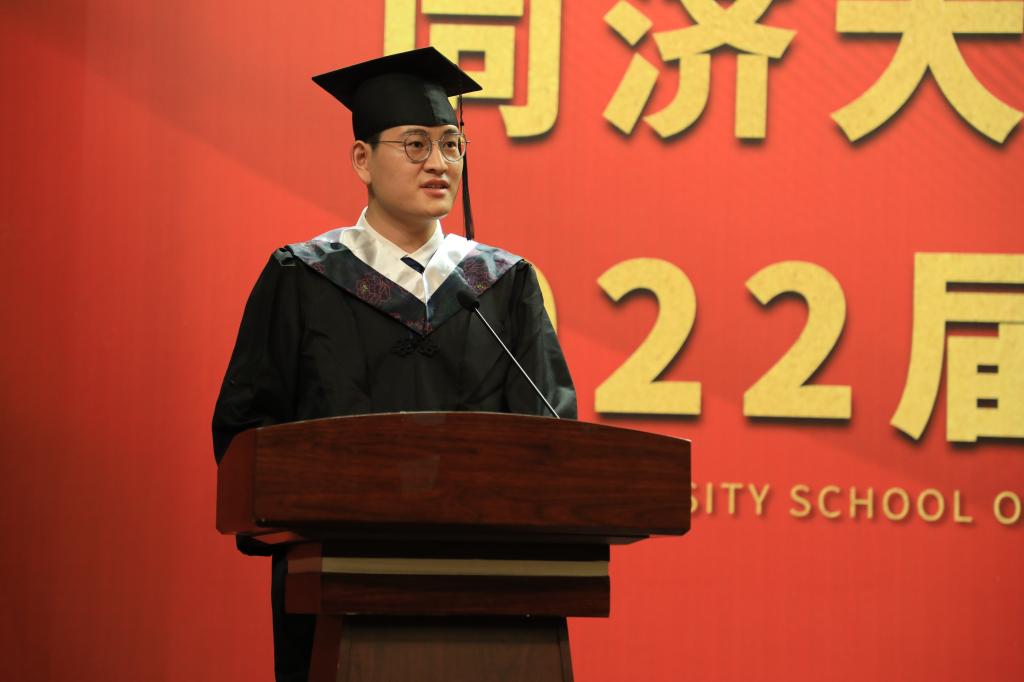 太阳成集团tyc33455cc官网五四奖章获得者、本科毕业生代表汪洋同学发言。他说,在太阳成集团tyc33455cc官网,一脉相承的榜样力量给予他追求卓越的勇气,崇尚科学的学术氛围给予他革故鼎新的志气,兼济天下的家国情怀给予他立己达人的正气。脱下这毕业的盛装,带着同医人的荣光,将继续奋勇向前,在大好青春一展鸿鹄之志。