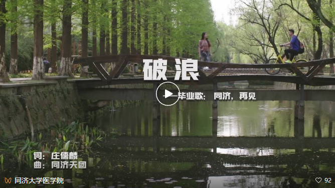 典礼在毕业生们制作的毕业献礼——《破浪》mv中拉开序幕,“你我扬帆将航,身披同济荣光,乘风破浪,向着海的方向”,歌词的字里行间都是对母校的不舍,曲中的婉转悠扬都是向未来的希望。