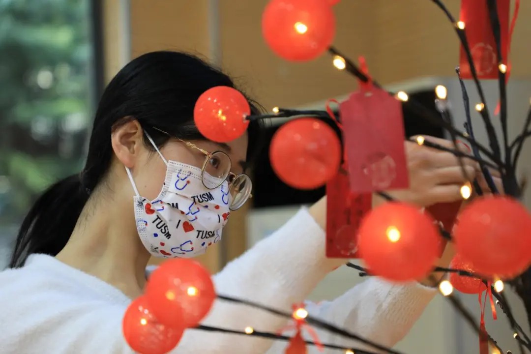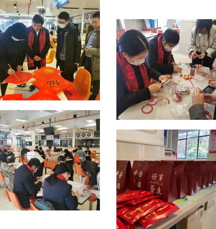 活动现场师生一起写春联、做宫灯,体验年俗年味。一句句新春愿望和祝福寄托了大家对新的一年的美好期待,满满成就感的宫灯制作寓意大家新的一年红红火火、圆圆满满。