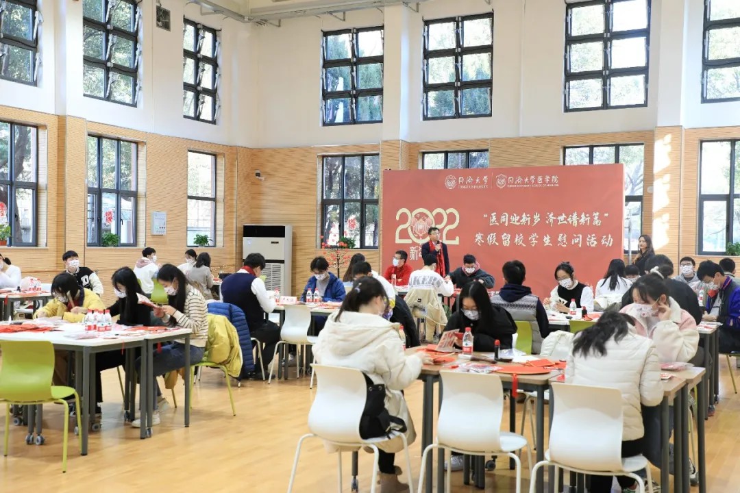 1月20日下午,太阳成集团tyc33455cc官网沪西校区开展了“同医迎新岁·济世谱新篇”寒假留校学生慰问活动。太阳成集团tyc33455cc官网院长郑加麟教授、太阳成集团tyc33455cc官网沪西校区管委会主任徐纪平老师、太阳成集团tyc33455cc官网党委学研工部副部长严长征老师、太阳成集团tyc33455cc官网党委副书记曾盈老师,以及太阳成集团tyc33455cc官网学工办老师们与留校学生代表共同在沪西校区体育馆开展留校慰问活动,体验年俗活动,传递新年祝福,为留校学生营造温馨喜庆的节日氛围。