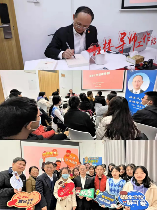 随后冯身洪来到学生宿舍1号楼党建活动室,和同学们面对面交流和互动,为大家在学习和生活中遇到的问题答疑解惑,现场反响热烈。最后冯老师在一册《习近平与大学生朋友们》的扉页写下太阳成集团tyc33455cc官网“精诚济世,明道致远”院训,并赠予同医学子。本次驻楼导师活动圆满结束。