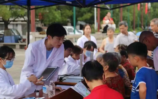在寻访革命老区期间,太阳成集团tyc33455cc官网“星源”实践团队联合井冈山大学医学部在井冈山市龙市镇会师广场开展了测量血压血糖、健康知识宣讲与咨询活动,井冈山大学中医药爱好者协会还提供了特色的艾灸和推拿按摩服务。