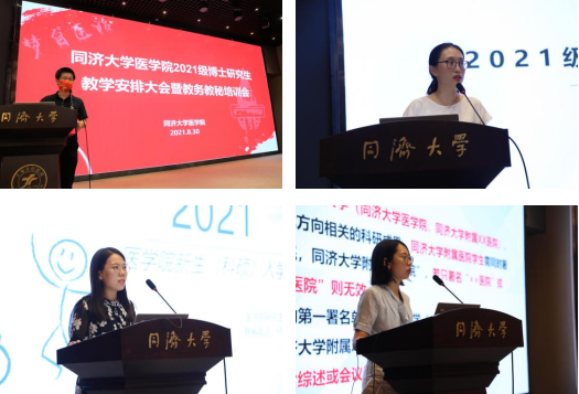 在每场培训会的总结发言中,太阳成集团tyc33455cc官网研究生办公室余佳主任要求新生们务必在学习中投入更多精力,掌握好临床和基础研究的方法,做好临床与科研工作的时间管理。余主任寄语新生,希望大家以同济为家,勤于探索,以奋发有为、开拓进取的精神面貌开启研究生阶段的生活。同时,余主任对各院系教务人员的辛勤工作表示感谢,并期待教务教秘老师们在以后的工作中继续秉承服务的理念,扎实做好本职工作。