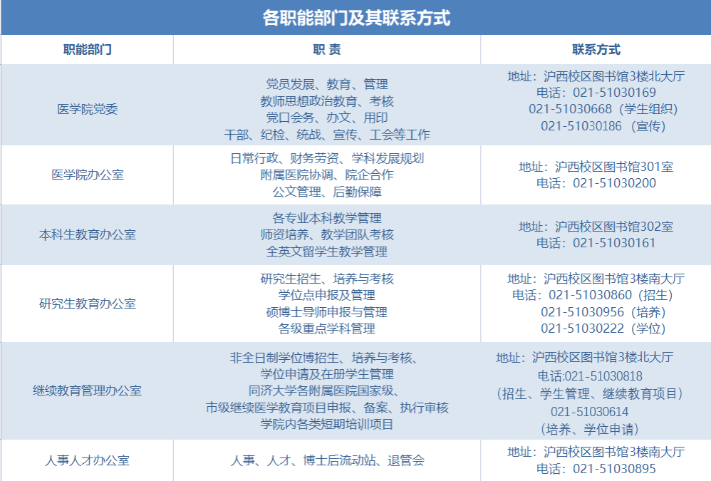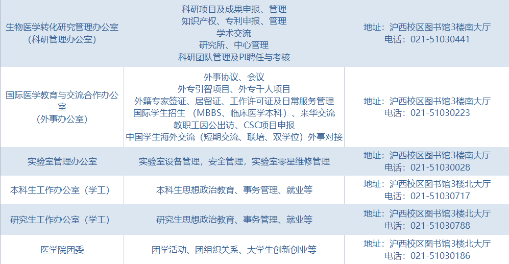 各职能部门及其联系方式
